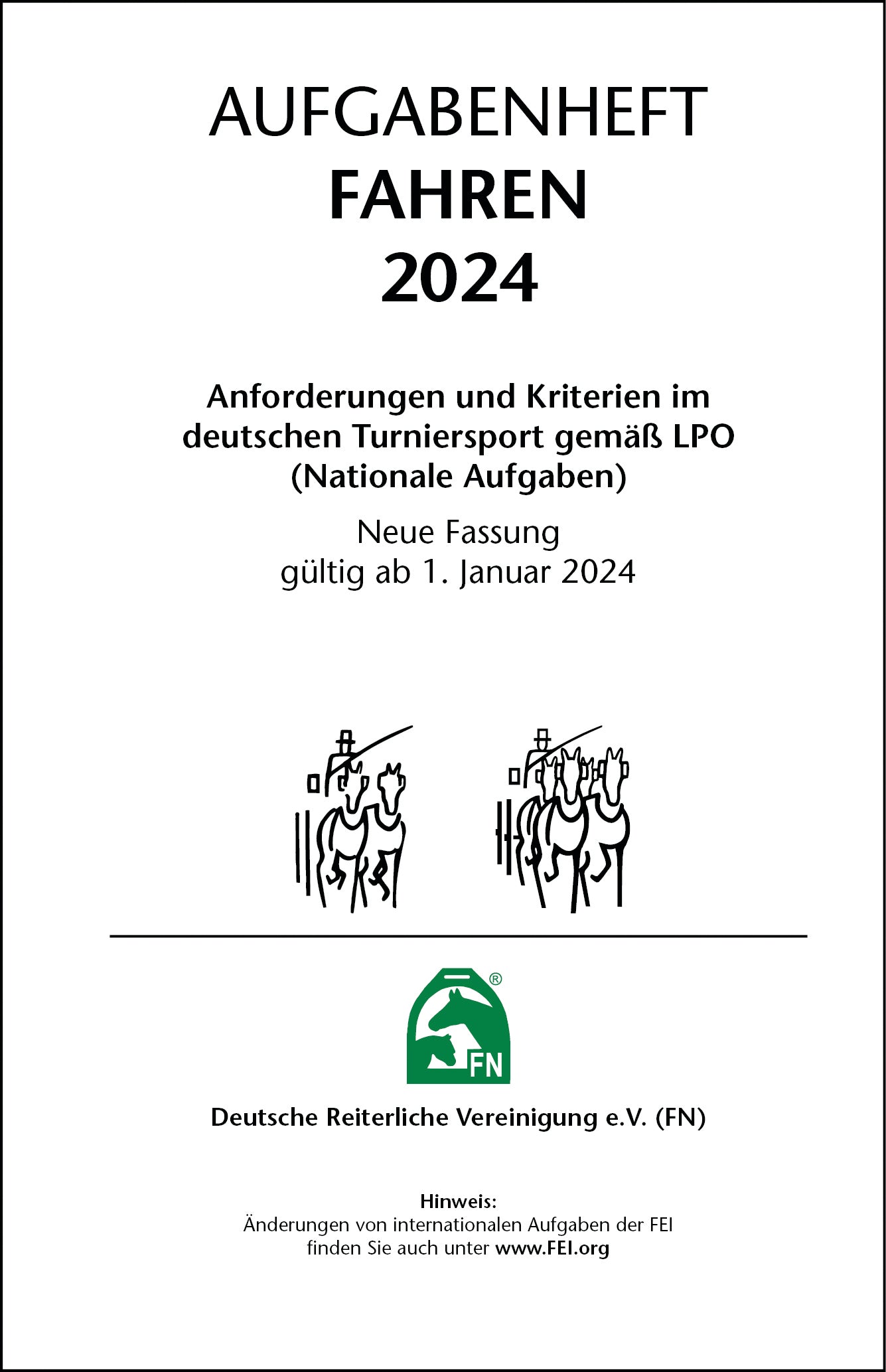 Das Aufgabenheft – Fahren – enthält neben den nationalen Fahraufgaben Beschreibungen zu den einzelnen Prüfungsarten und zusätzlich Standardanforderungen für Stilkegelfahren.