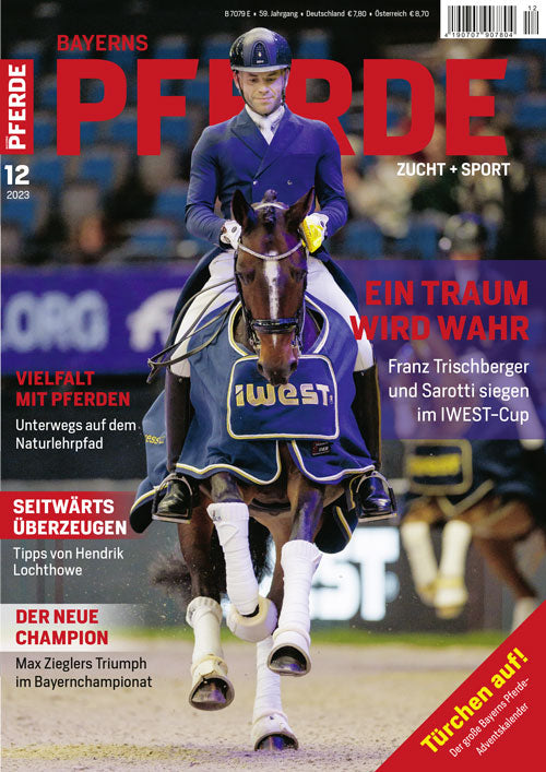 Franz Trischberger hat sich einen Traum erfüllt und mit seiner Sarotti das Finale des IWEST-Cups in der Stuttgarter Schleyer-Halle gewonnen. Sowohl in der Einlaufprüfung als auch in der Kür hat das Paar abgeliefert. Auch sein Bruder Thomas ist hocherfolgreich im Dressurviereck. In einem Porträt stellen wir die Brüder vor, auf unseren Sportseiten lesen Sie außerdem alles zum spannenden Finale.
